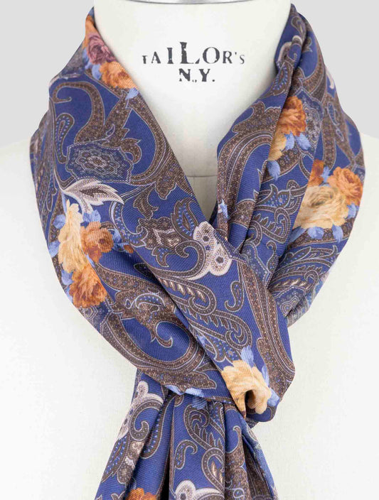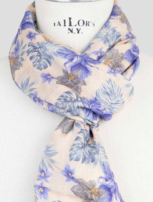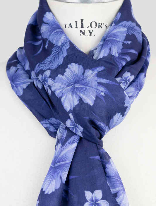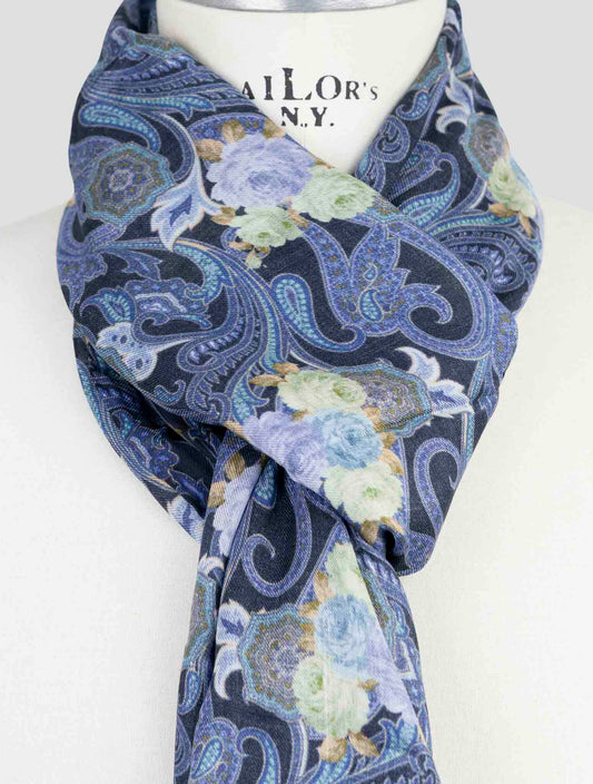 Kiton Modal Cashmere Floral Scarf Blue 70x200cm Italian Luxury
