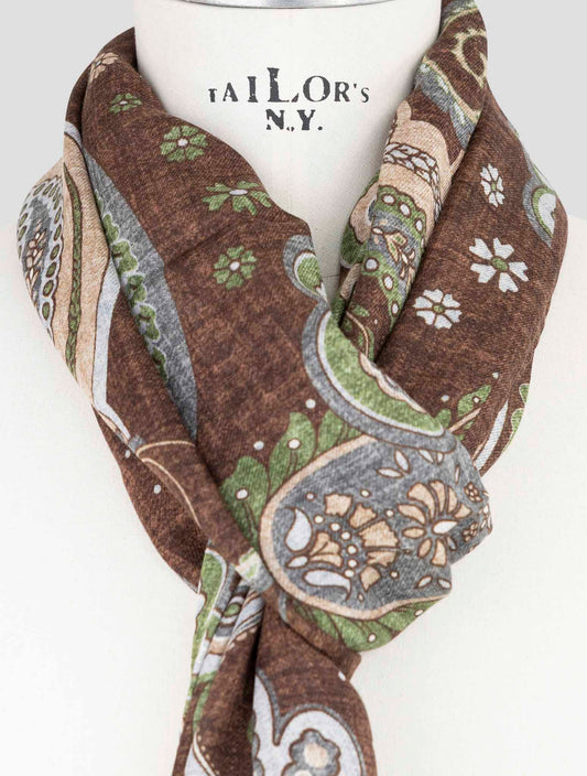 Kiton Modal Cashmere Paisley Scarf 70x200cm Italian Multicolor