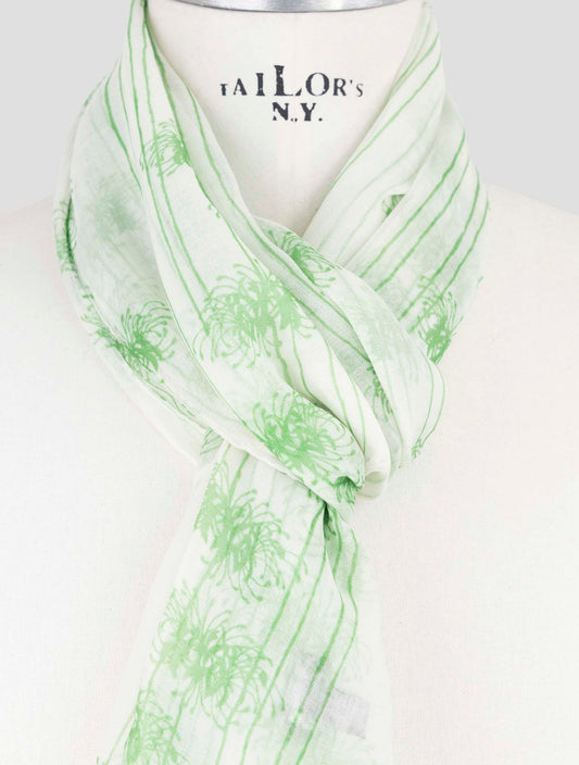 Kiton Handmade Modal Cashmere Scarf Green Floral Italian 70x180cm