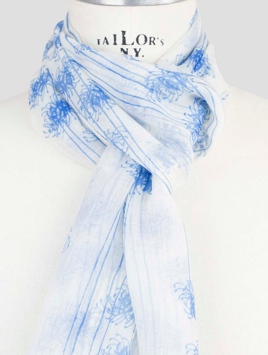 Kiton Luxury Modal Cashmere Scarf Blue White Floral Italian 70x180cm