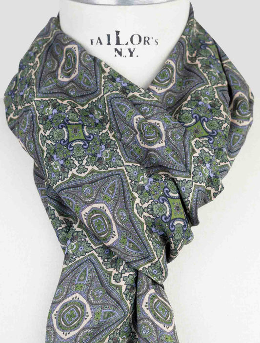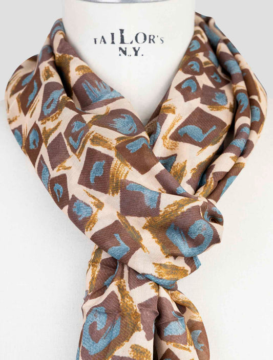 Kiton Pure Silk Scarf Multicolor Fantasy Pattern 45x200cm Italy