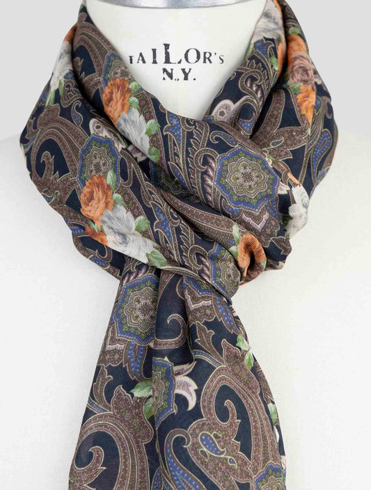 Kiton Handmade Paisley Modal Cashmere Scarf Multicolor 70x200cm