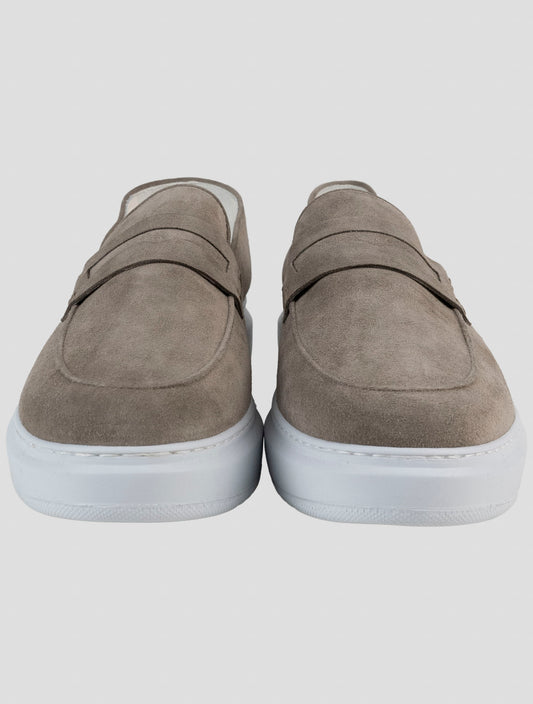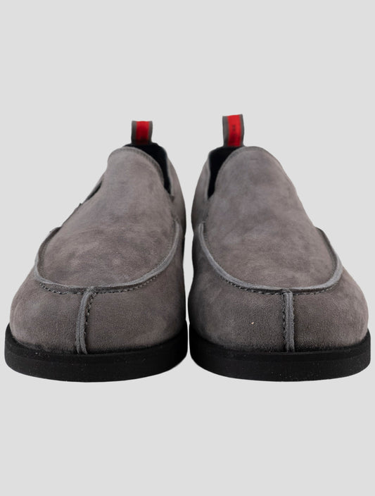 Kiton Gray Suede Loafers - Handmade Italian Leather Slip-On Shoes