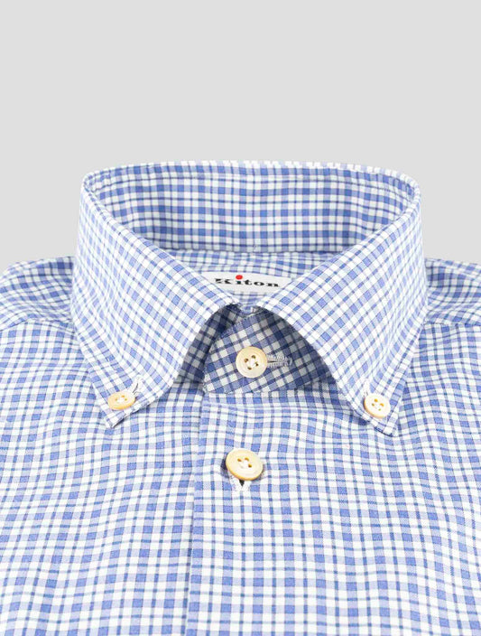 Kiton Blue White Cotton Shirt - Italian Handmade Geometric Pattern