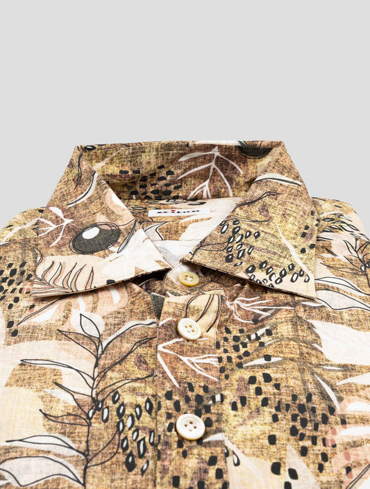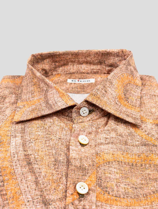 Kiton Green Brown Linen Korean Shirt - Italian Handmade Summer