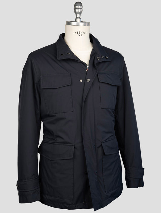 معطف كيتون الأزرق الداكن من القطن مع فرو الويسل