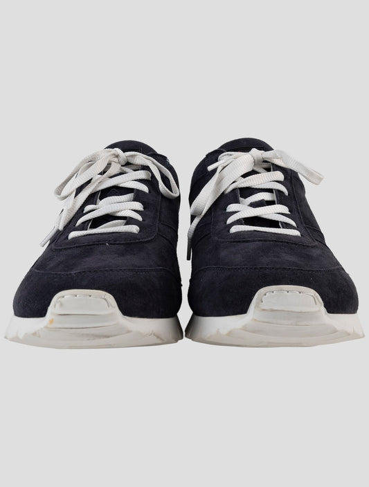 Kiton Handmade Blue Suede Leather Sneakers - Italian Luxury