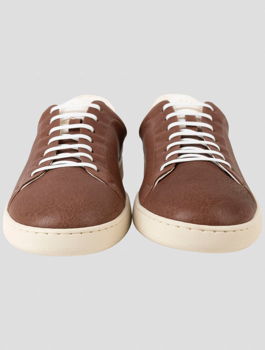 Kiton Handmade Brown Full-Grain Leather Sneakers Men's Italian