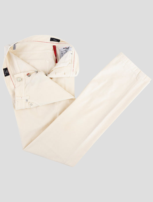Kiton White Cotton Cashmere Velvet Pants - Handmade Italian Slim