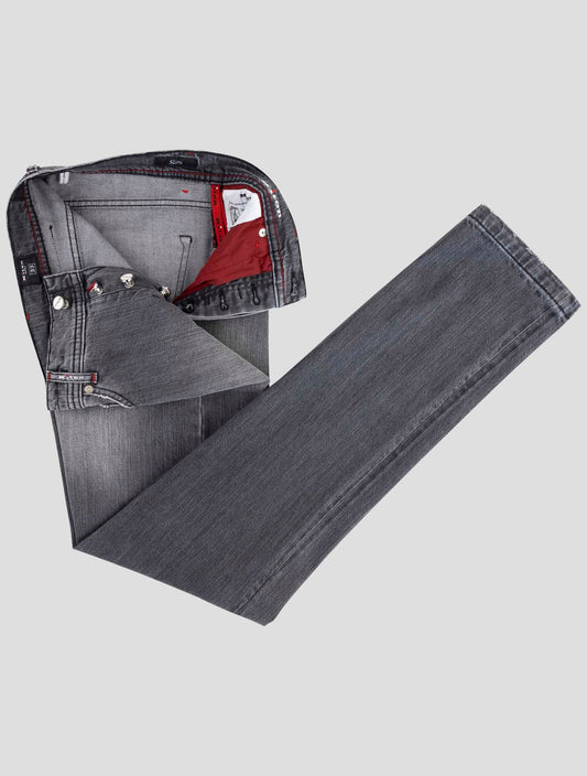 Kiton Handmade Dark Gray Cotton Elastane Slim Fit Jeans Italian