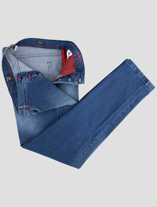 Kiton Handmade Italian Cotton Elastane Denim Jeans Slim Fit