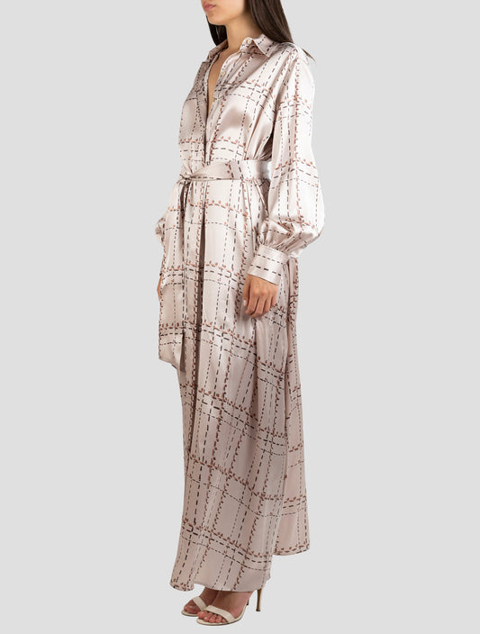 Kiton Brown Silk Dress - Handmade Italian Luxury Floral