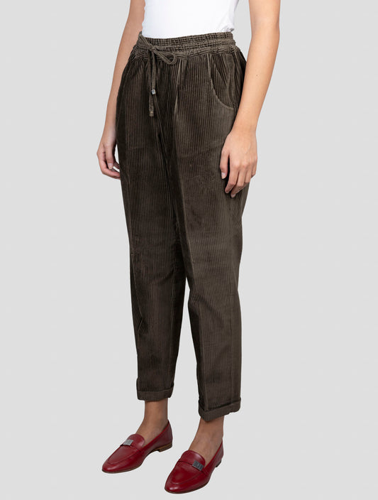 Kiton Brown Cotton Velvet Pants - Handmade Italian Luxury Women's