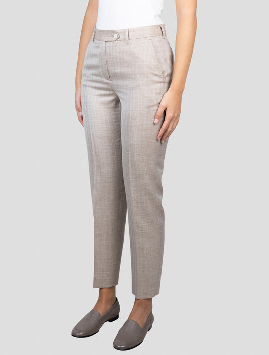 Kiton Women's Beige Virgin Wool Silk Linen Tailored Pants