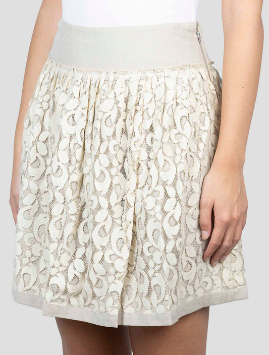 Kiton Beige Linen Viscose Floral Skirt - Italian Handmade
