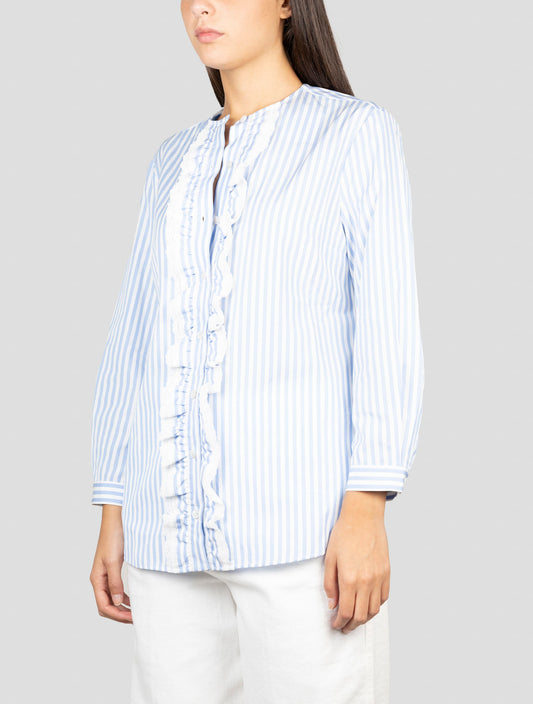 Kiton Women's Handmade Cotton Striped Shirt - White Blue Italian