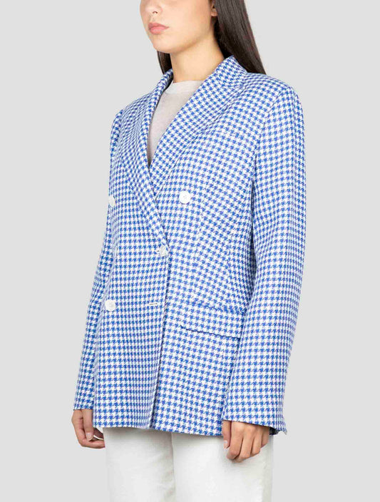 Kiton Handmade Cashmere Linen Blazer - Blue White Houndstooth