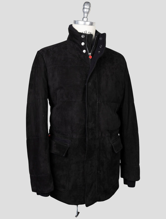 معطف كيتون الأسود من الجلد المدبوغ