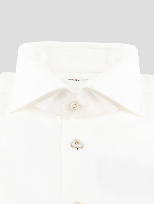 Kiton White Cotton Dress Shirt - Handmade Italian Regular Fit