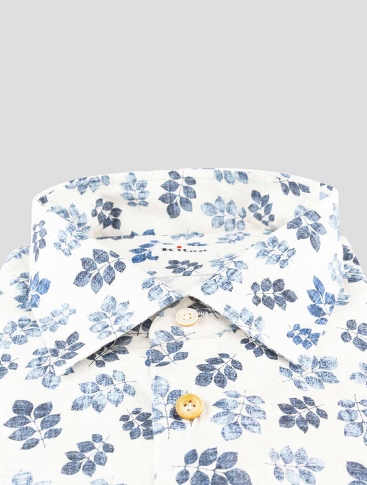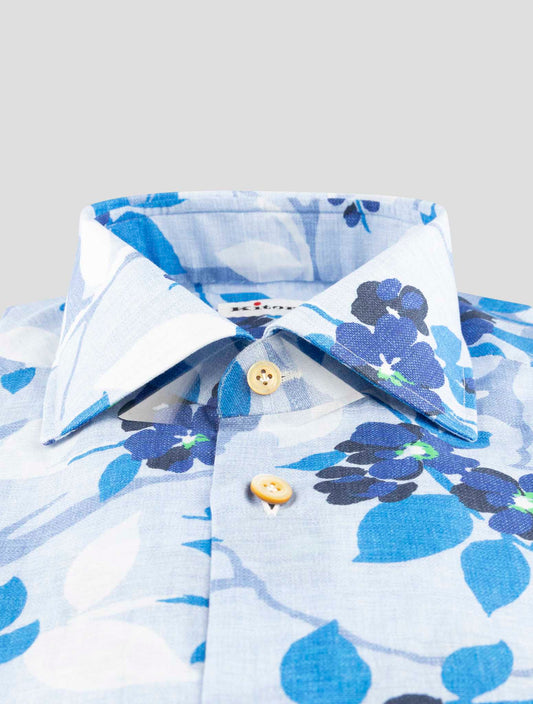 Kiton Blue Floral Cotton Shirt - Handmade Italian Dress Shirt