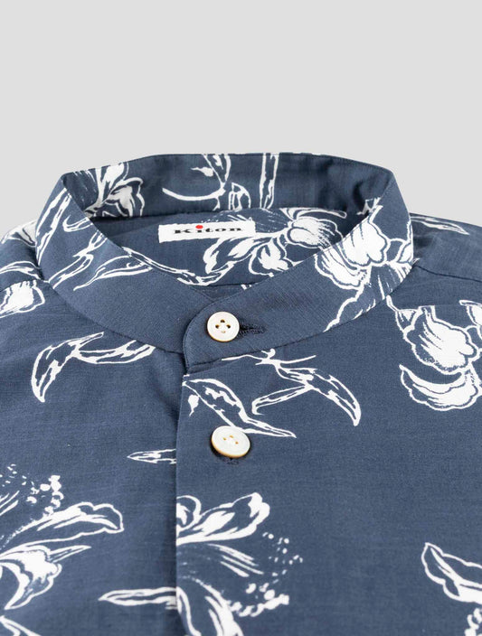 Kiton Blue Cotton Shirt - Handmade Italian Floral Pattern