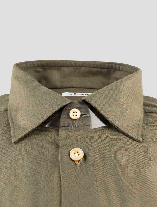 Kiton Green Cotton Dress Shirt - Italian Handmade Premium