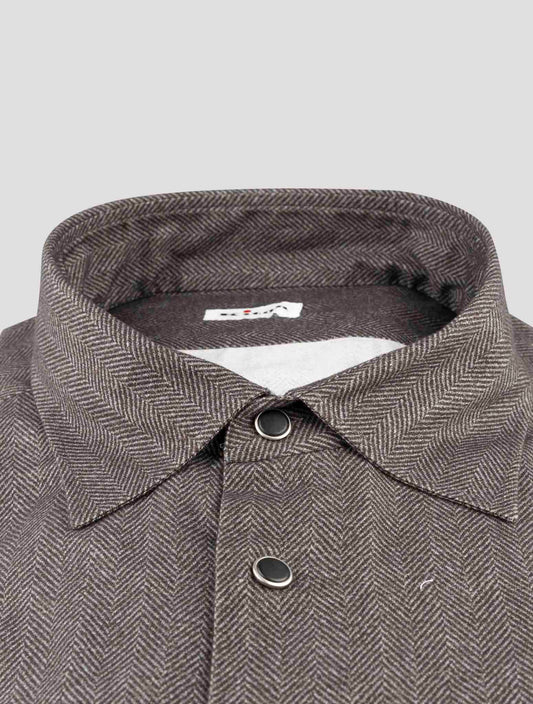 Kiton Handmade Brown Cotton Dress Shirt - Pied de Poule Pattern