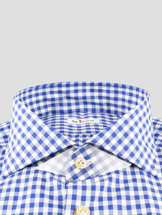 Kiton Blue Cotton Dress Shirt - Handmade Italian Regular Fit