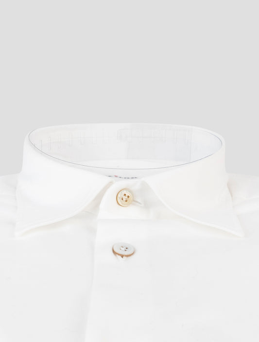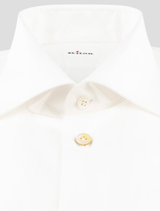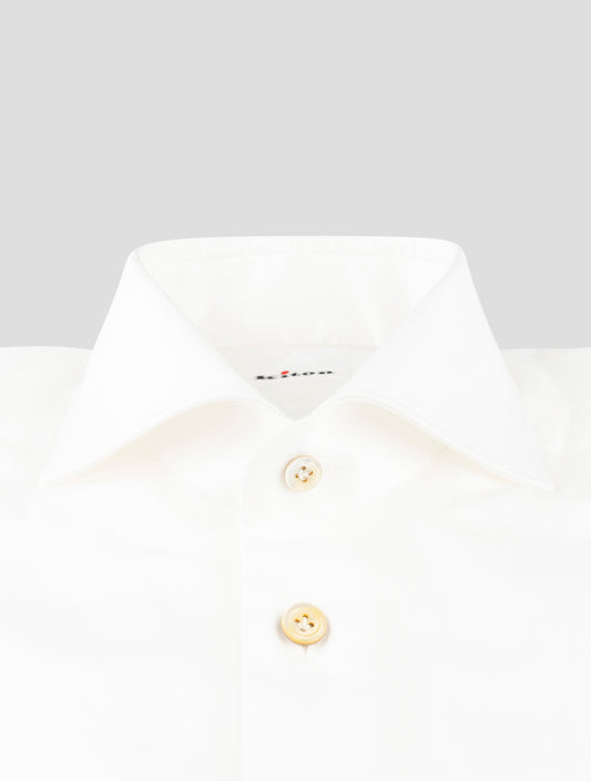 Kiton Premium Handmade White Cotton Dress Shirt Regular Fit Italy