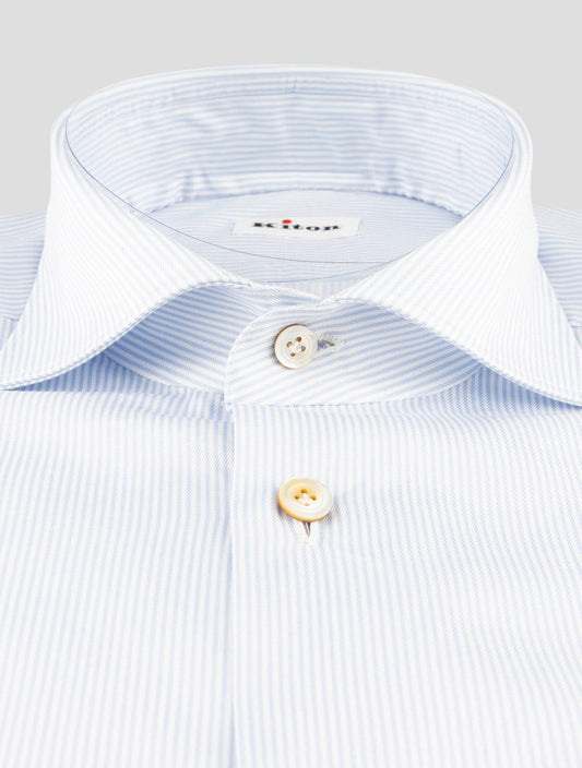Kiton Premium Cotton Striped Dress Shirt Light Blue White Italian