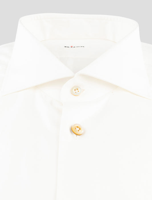 Kiton Premium White Cotton Dress Shirt - Handmade Italian Regular Fit