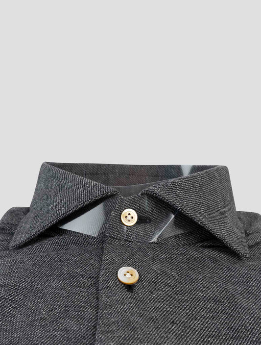 Kiton Dark Gray Cotton Dress Shirt - Handmade Italian Regular Fit
