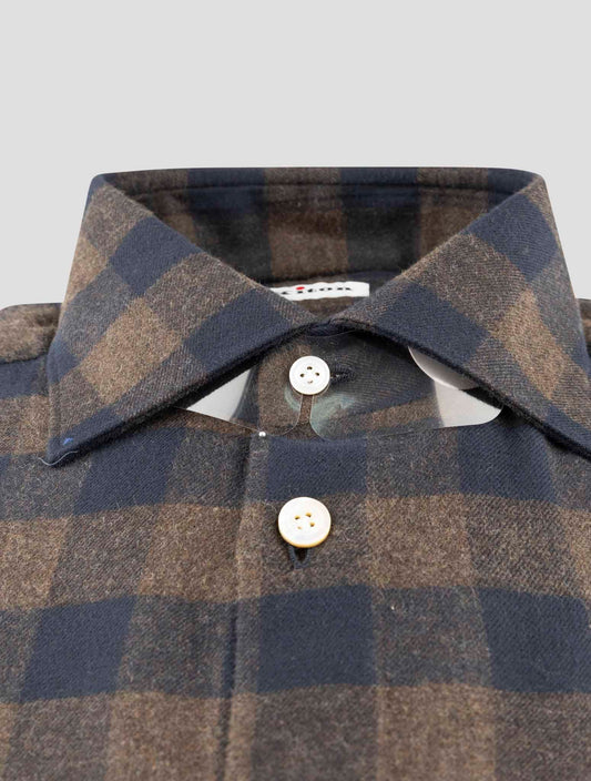 Kiton Handmade Premium Cotton Plaid Shirt Gray Multicolor