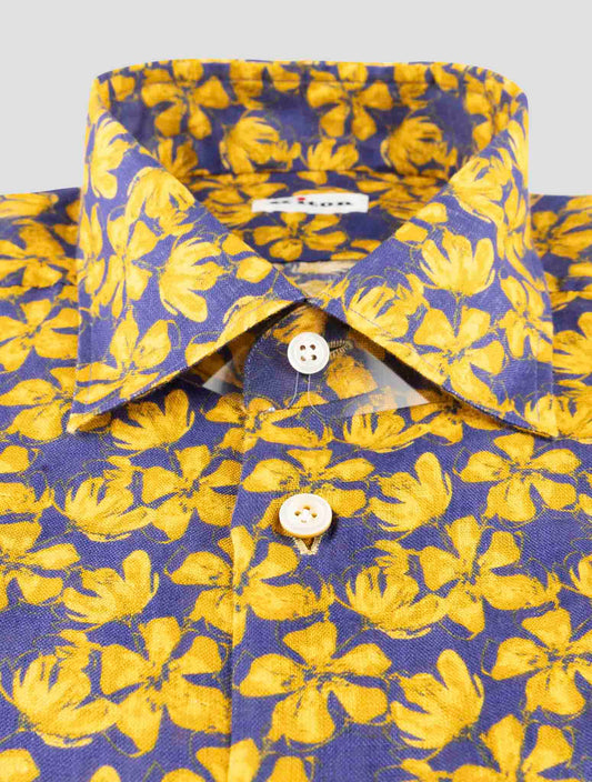 Kiton Premium Handmade Linen Shirt Multicolor Floral Men Summer