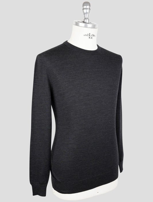 Kiton Premium Wool Crewneck Sweater Dark Gray Diamante Blue