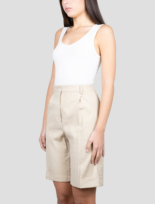 Kiton Beige Linen Viscose Short Pants - Women's Italian Crafted