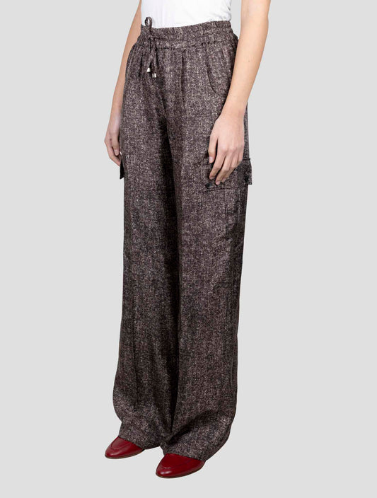 Kiton Brown Silk Pants - Handmade Italian Luxury Trousers Women