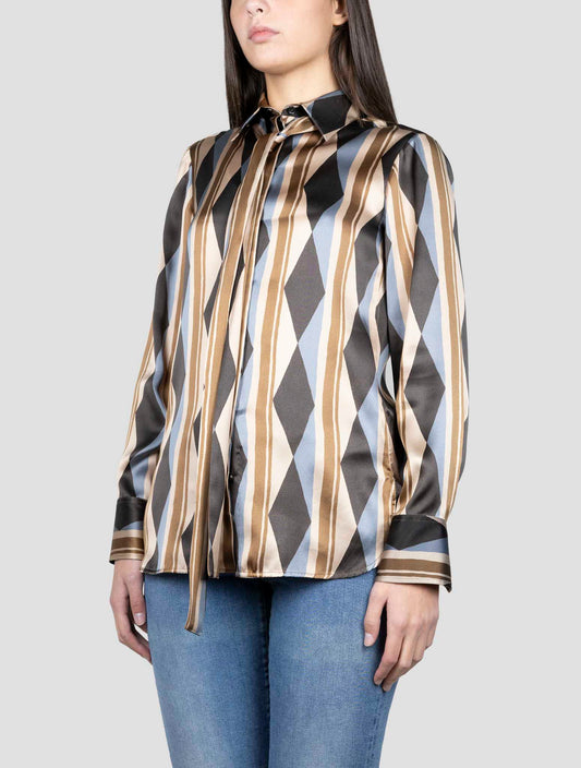 Kiton Multicolor Silk Shirt - Geometric Print Women's Blouse
