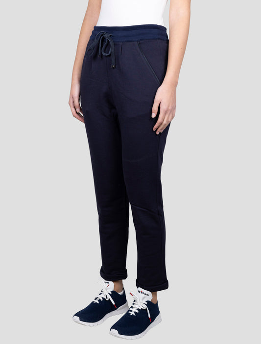 Kiton Blue Cotton Cashmere Pants - Italian Handmade Women's Trousers