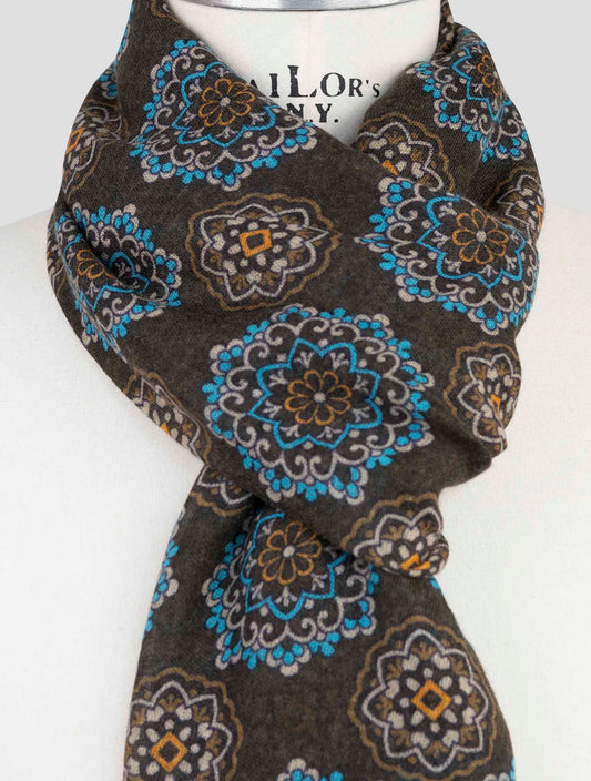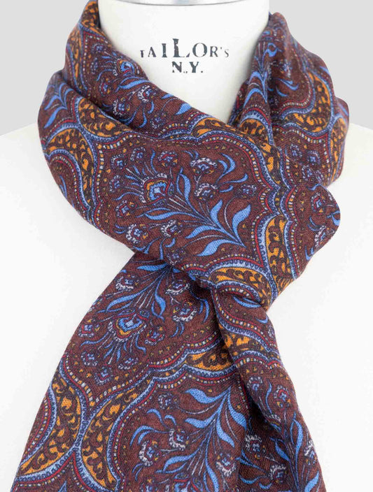 Kiton Handmade Cashmere Silk Scarf Brown Blue 70x200cm