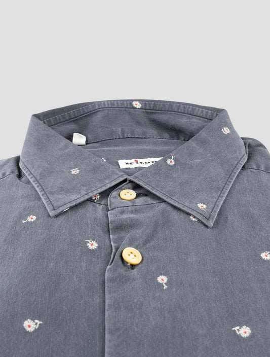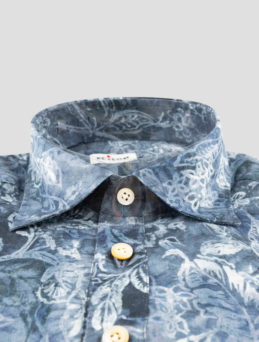 Kiton Premium Cotton Linen Shirt Gray Regular Fit Handmade Italian
