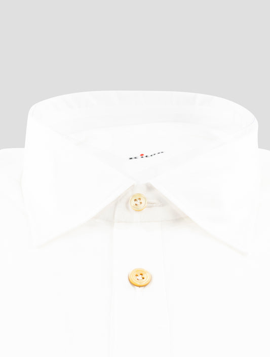 Kiton White Cotton Dress Shirt - Handmade Italian Regular Fit
