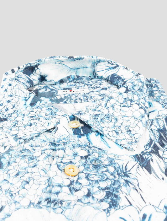 Kiton Blue Linen Shirt - Italian Handmade Premium Floral Summer