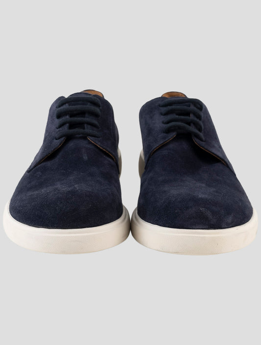 Kiton Blue Suede Leather Sneakers - Handmade Italian Premium