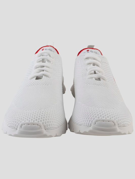 Kiton Handmade Cotton White Red Sneakers Italy Premium