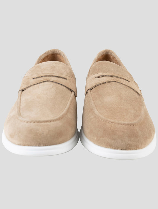 Kiton Premium Beige Suede Italian Handmade Loafers Men's
