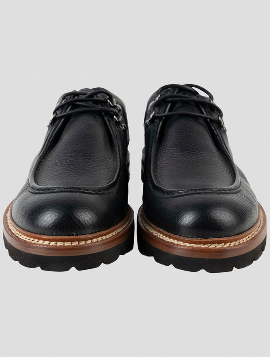 Kiton Premium Black Leather Fur-Lined Dress Shoes Italian Handmade