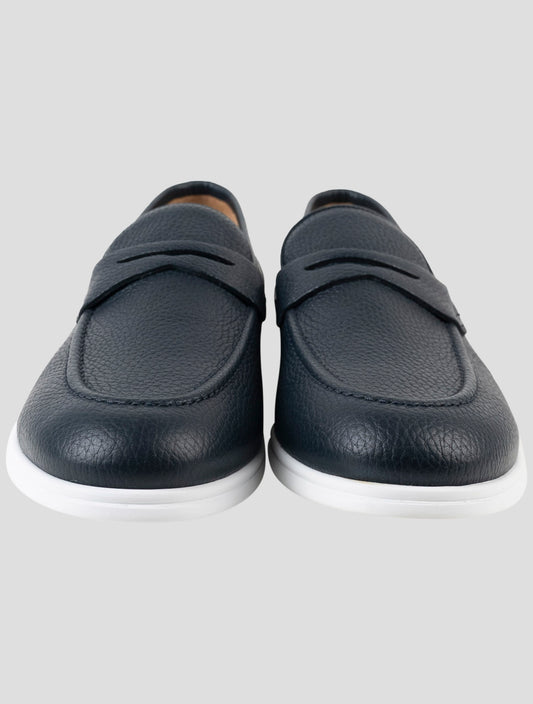 Kiton Blue Leather Loafers - Handmade Italian Mens Dress Shoes