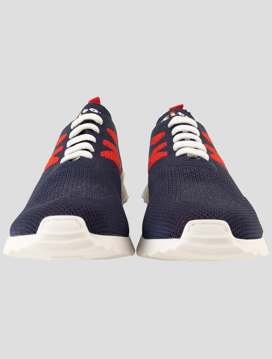 Kiton Premium Cotton Elastane Sneakers Blue Red - Handmade Italy