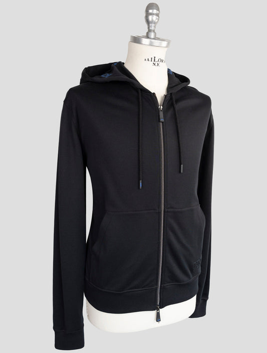 Kiton KNT Premium Black Cotton Full Zip Sweater - Italian Luxury